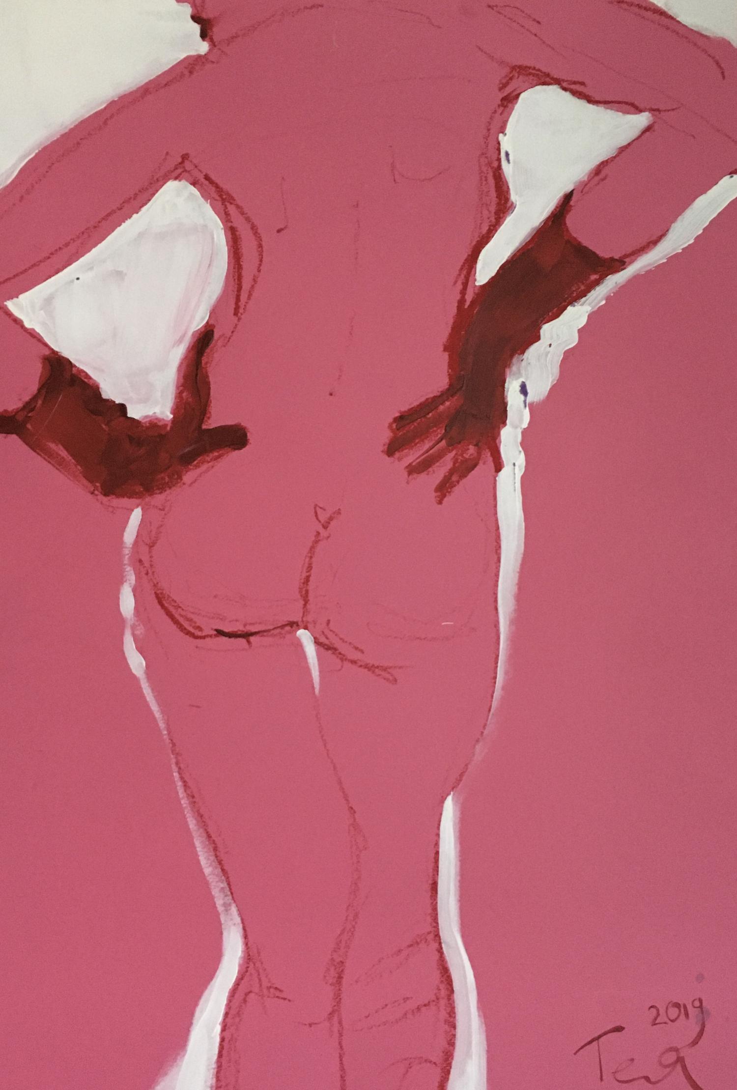 Розовая в перчатках
